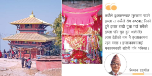 एक पटक पुग्नैपर्ने धार्मिक एवं प्राकृतिक पर्यटनस्थल हो– इच्छाकामना मन्दिर । चितवन जिल्लाको इच्छाकामना गाउँपालिका–२, चिसोपानीस्थित इच्छाकामना मन्दिर एकदम आकर्षक एवं सुन्दर देखिन्छ । यहाँ धार्मिक पर्यटनका साथै प्राकृतिक सौन्दर्य अवलोकनका लागि पनि निकै राम्रो स्थल रहेको छ । धेरै अग्लो स्थानमा रहेको इच्छाकामना माताको मन्दिरको दर्शन गर्न जाने क्रममा कुरिनटारबाट करिब दुई अढाई घण्टा […]